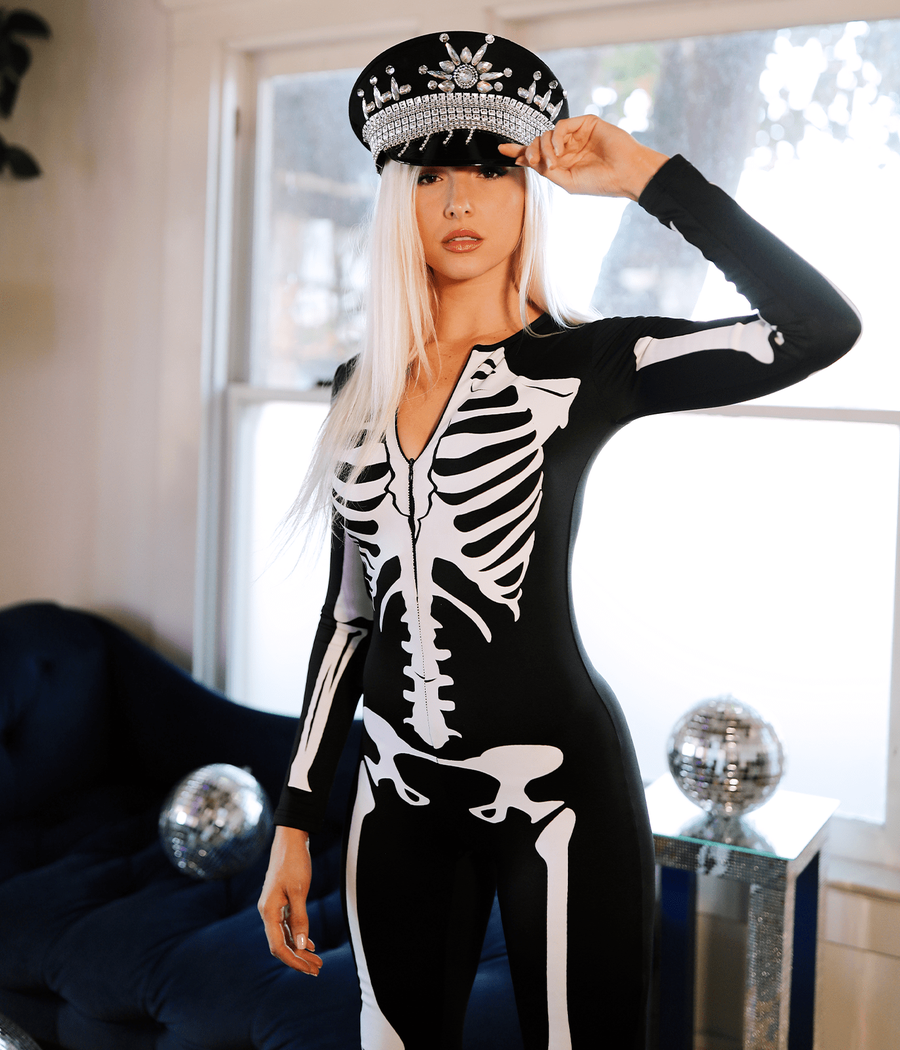 Our Festival hat is great for those who like to play dress up - use it to complement a night of Halloween karaoke or add it to our sexy Women's Skeleton bodysuit. Encrusted with jewels. it has all the look of a sexy skeleton with a little added bling. so you're pretty much ready for any kind of party. Feel like you're having a bad hair day? Hide all manner of sins under one funky hat. Your guests will be so mesmerized. they won't even notice.