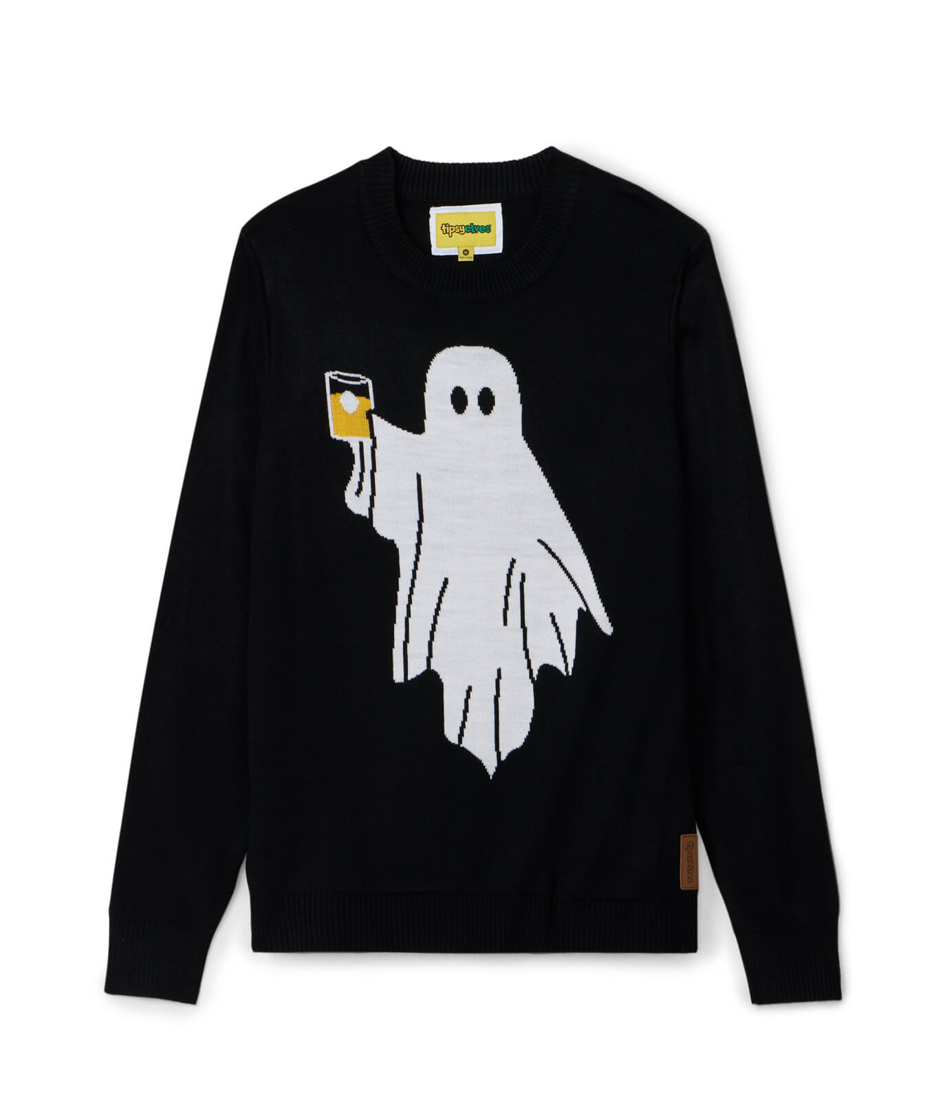 Raise spirits in the Tipsy Elves BOOze Ghost Sweater. Featuring a cheeky ghost with a drink in hand. this cozy knit is perfect for Halloween happy hours and autumn nights.